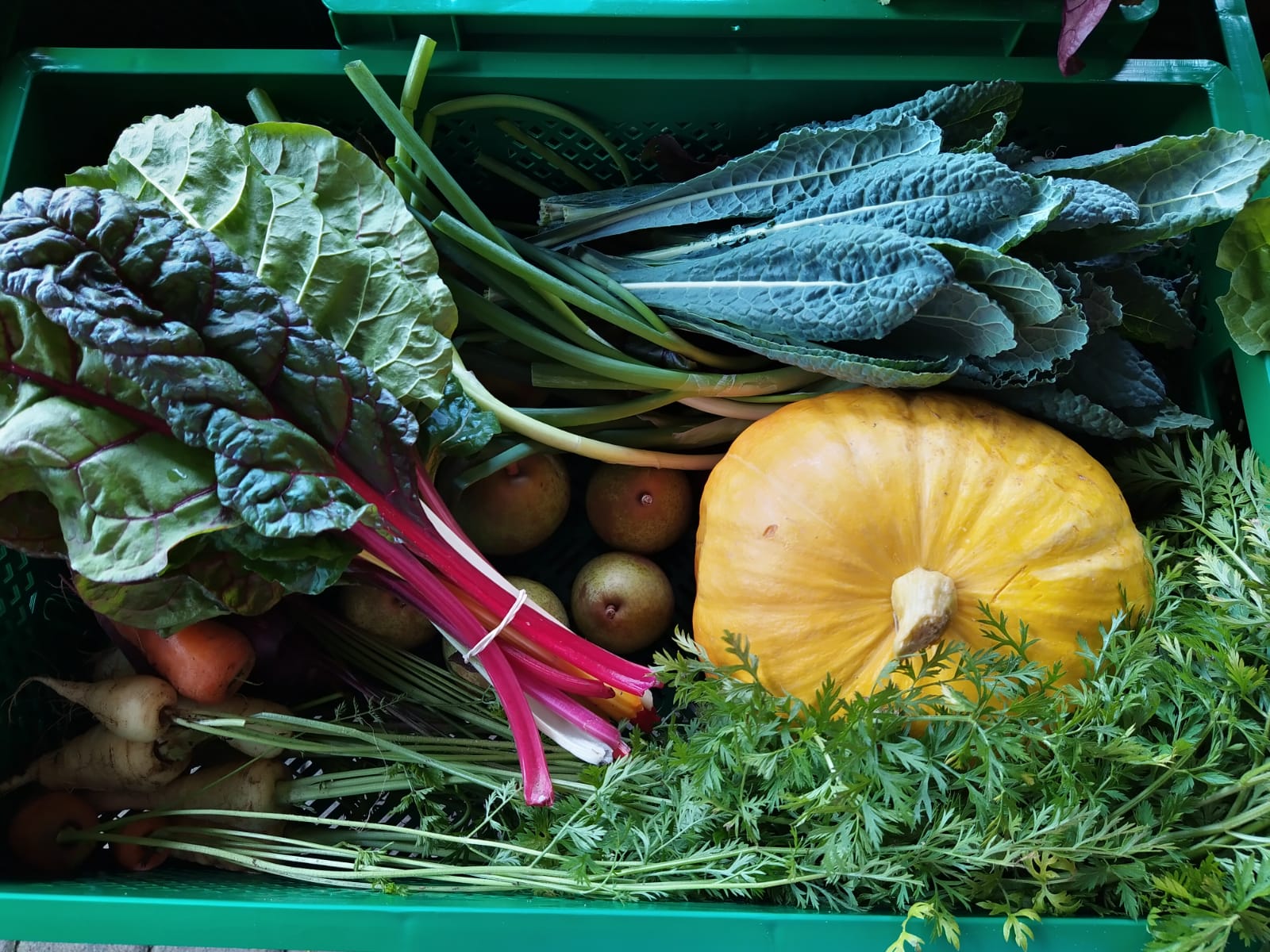 Gesundes Gemüse direkt vor Ort angebaut, ohne lange Transportwege. Produziert ohne den Einsatz großer Maschinen nach den regenerativen Prinzipien der Permakultur.